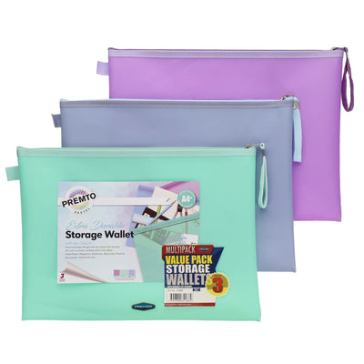 Premto A4+ Extra Durable Storage Wallets - Ice Pastel - Pack of 3